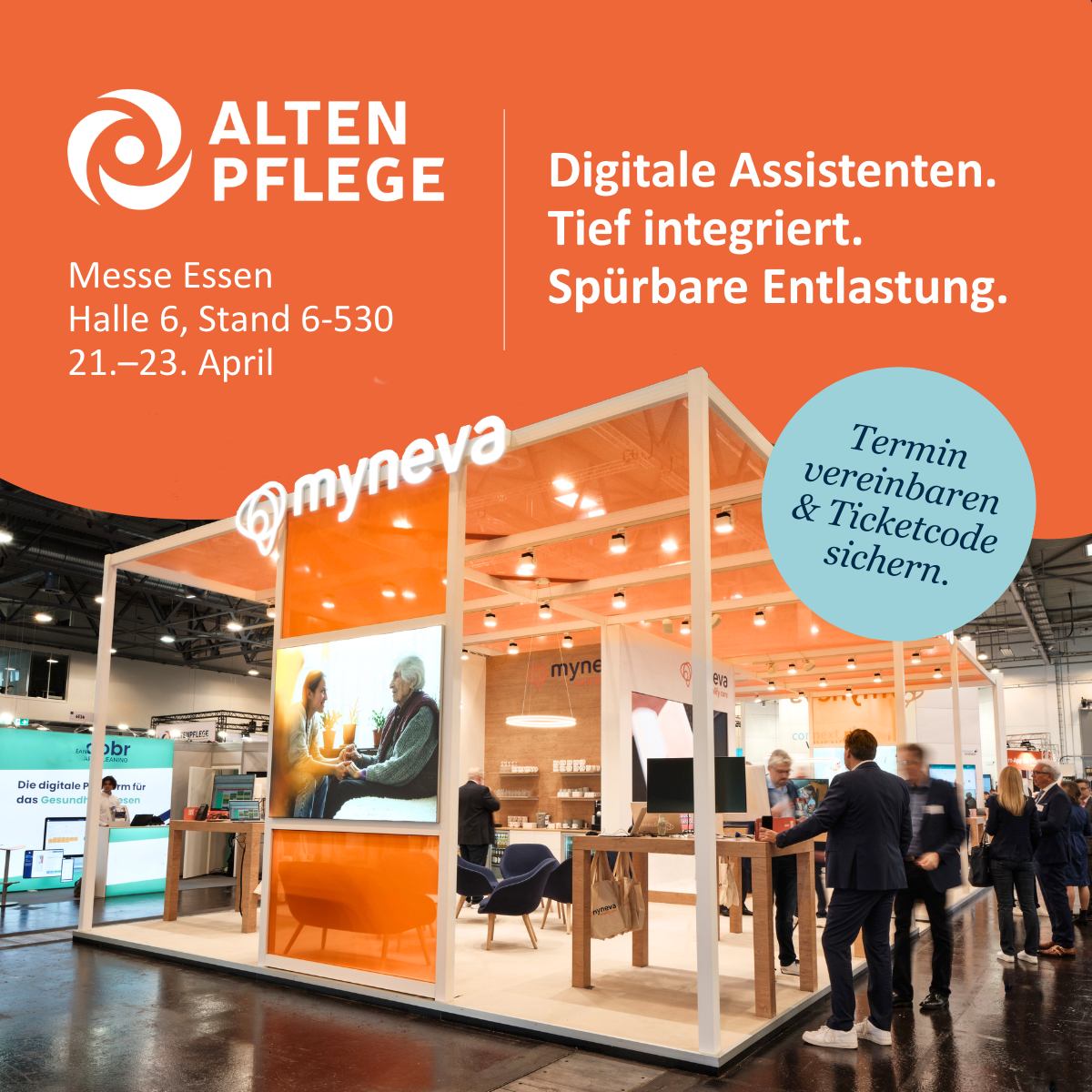 Auf der Altenpflegemesse 2026 in Essen vom 21. bis 23. April zeigt die myneva Group, wie digitale Lösungen Pflegekräfte im Alltag entlasten und gleichzeitig einen europäischen Standard für moderne Pflegeprozesse setzen können.