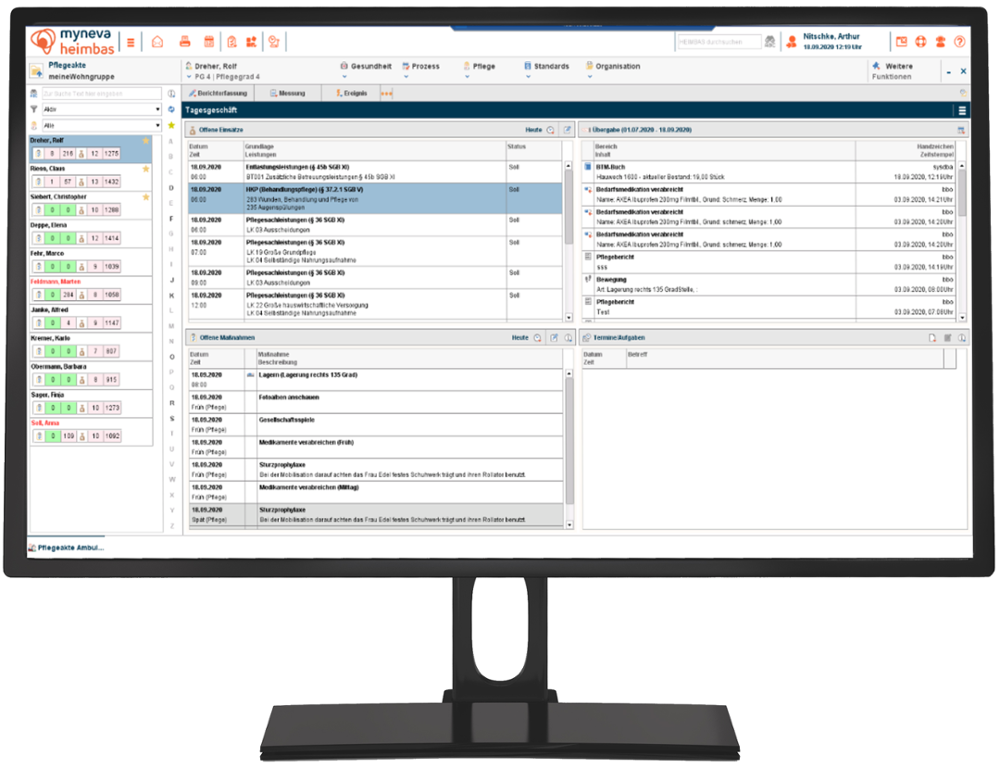 Sowohl die Pflegekräfte, die Bewohner vollzeitlich betreuen, als auch diejenigen des ambulanten Dienstes werden stark entlastet, da alle notwendigen Daten und Informationen an einer Stelle gebündelt und übersichtlich vorhanden sind. Mit nur einem Blick sehen Pflegekräfte direkt alles Wichtige des Tagesgeschäfts und können direkt die notwendigen Eingabefelder aufrufen wie: